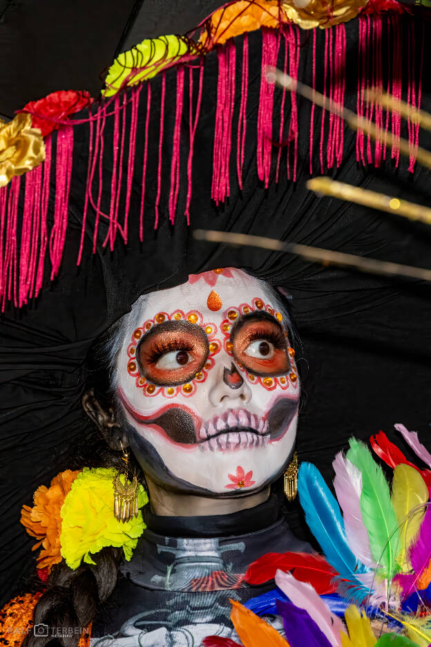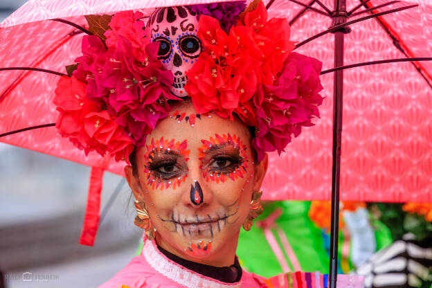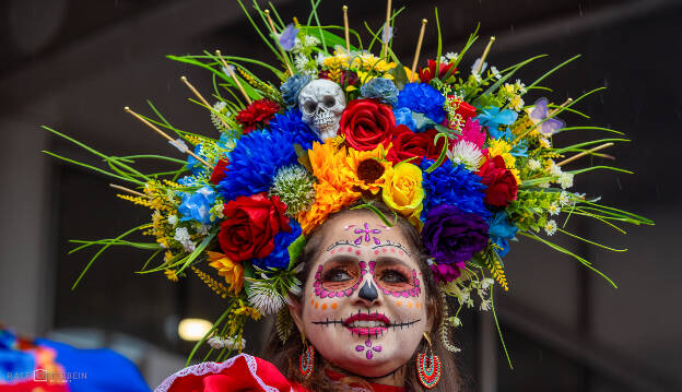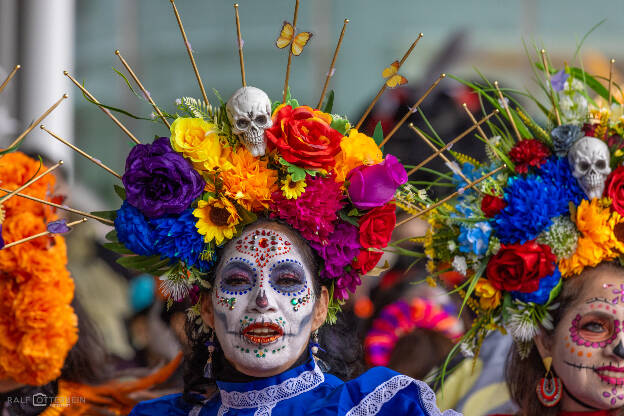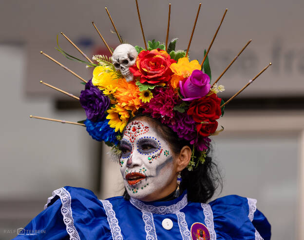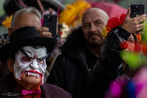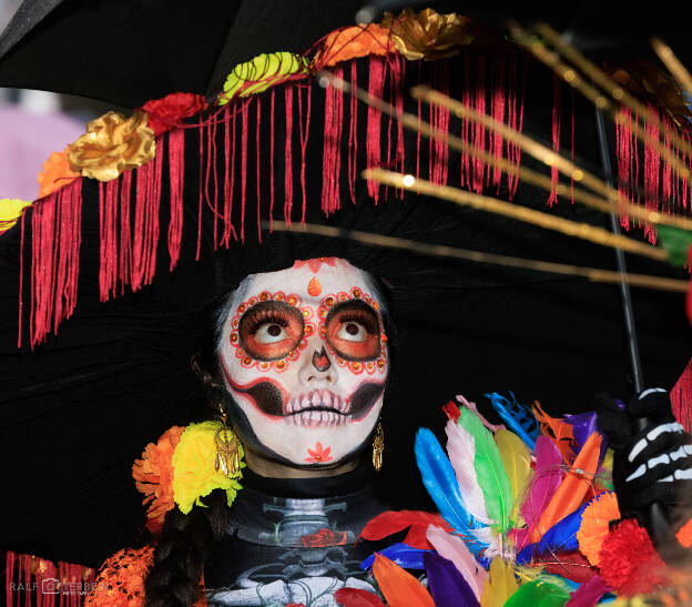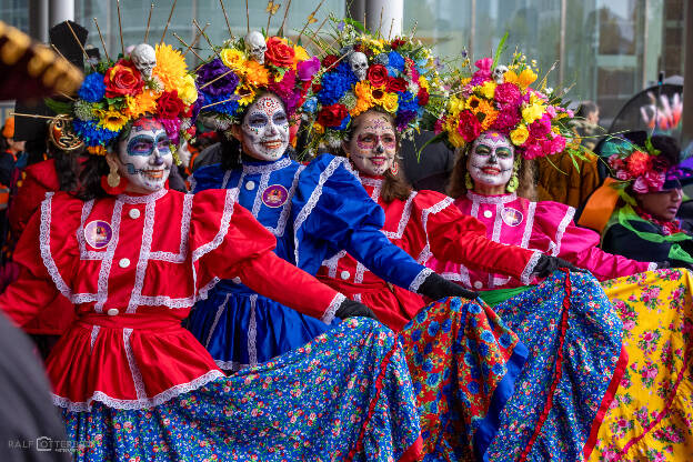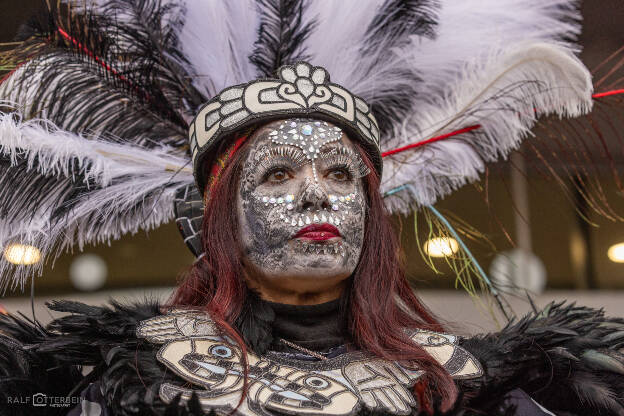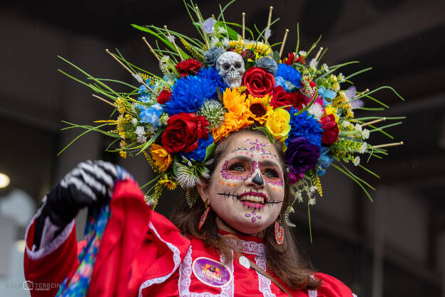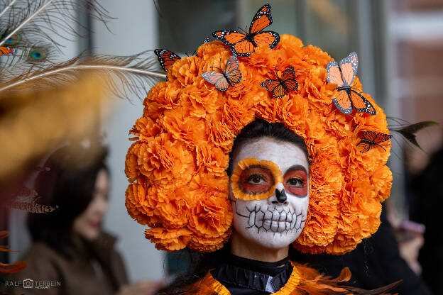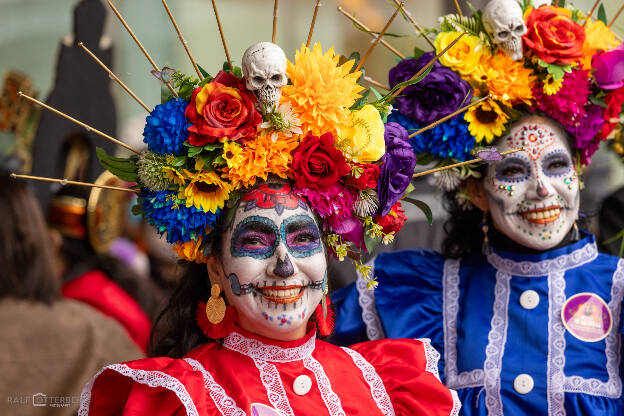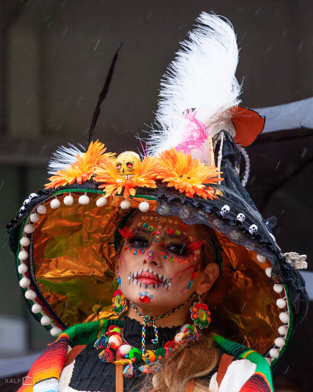 Das Mexikanische Konsulat hat zu „Catrinas und Catrines“ vor der Festhalle Frankfurt eingeladen – ein farbenprächtiges Spektakel voller Musik, Blumenkränze und kunstvollem Calavera-Make-up. Trotz Nieselregen herrschte eine ausgelassene, herzliche Stimmung. Día de los Muertos erinnert daran, die Verstorbenen nicht mit Traurigkeit, sondern mit Lebensfreude zu ehren – genau das war spürbar: ein Fest des Erinnerns, der Farben und der Gemeinschaft.